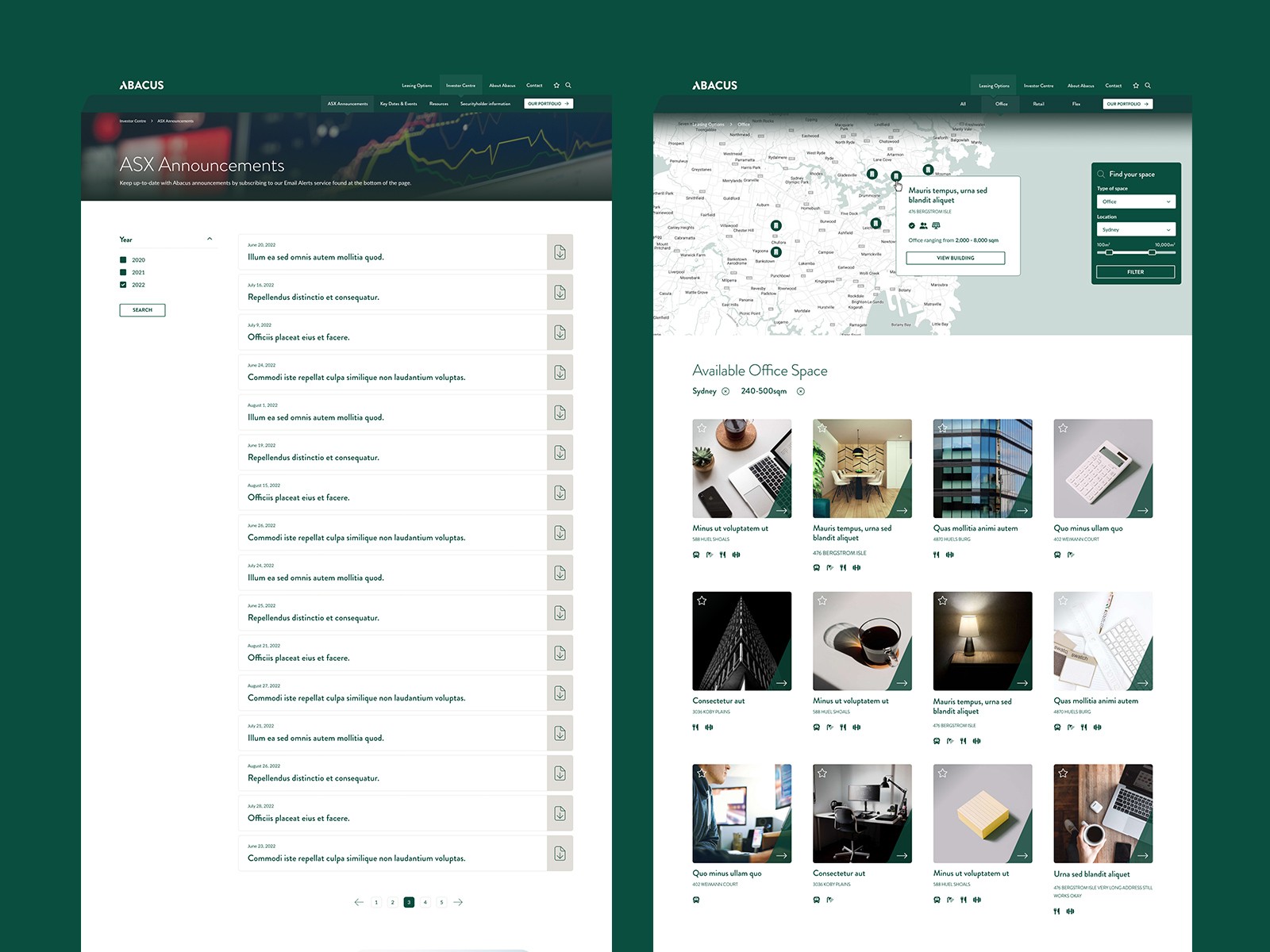 Redesign and rebuild of Abacus Group’s website to better show their properties and handle investor content.