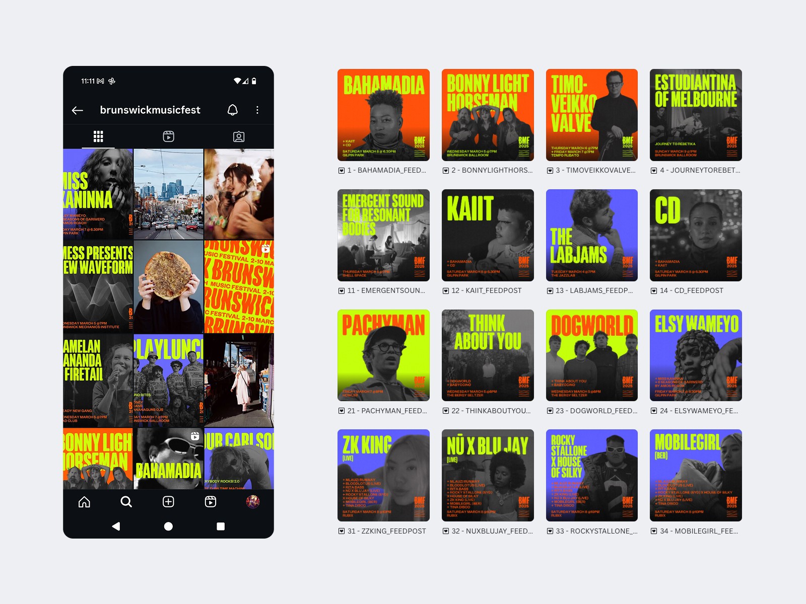Bold brand refresh and 100+ print and digital assets for Brunswick Music Festival.
